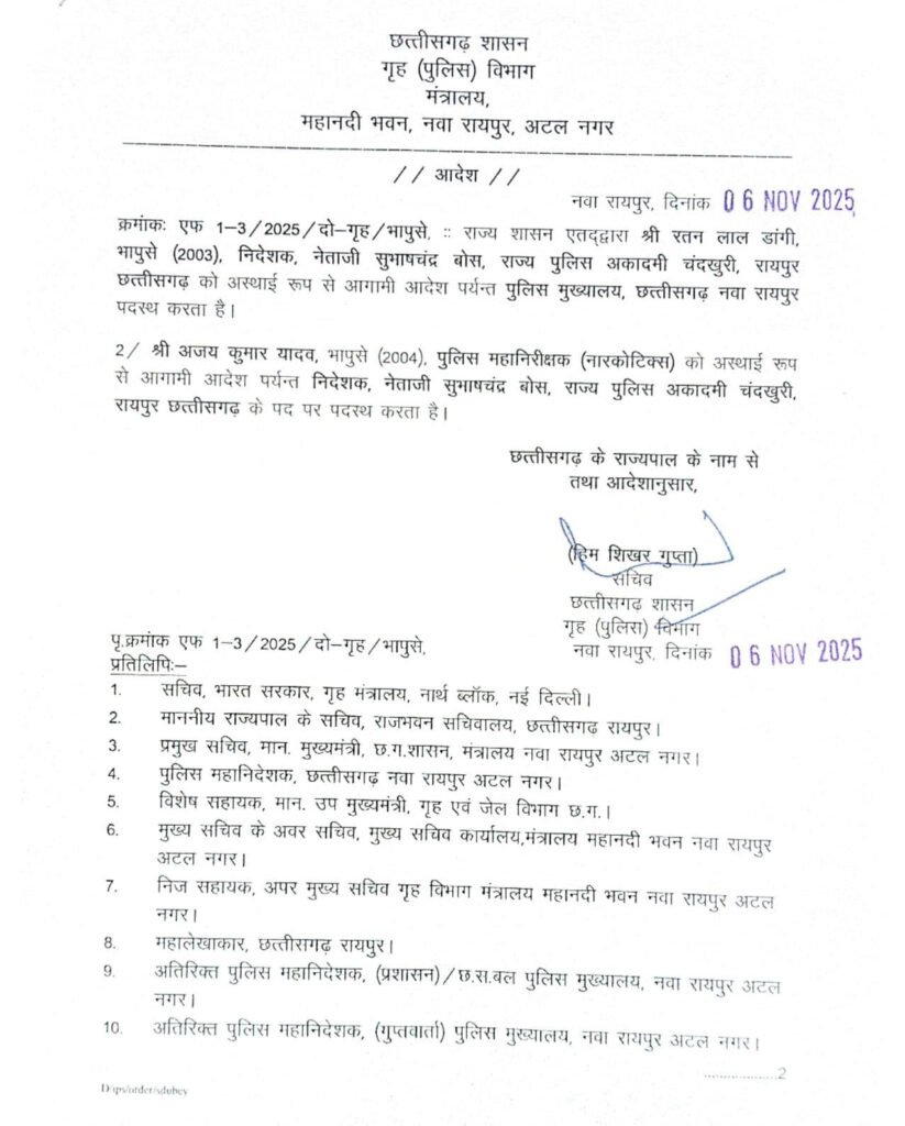 रायपुर : महिला उत्पीड़न में फंसे आईजी रतनलाल डांगी पर बड़ा एक्शन हुआ है। आरोप पर 20 दिन बाद राज्य सरकार ने बड़ी कार्रवाई की है। उन्हें उनके पद से हटा दिया गया है। इसके साथ ही पुलिस अकादमी चंदखुरी का प्रभार आईपीएस अजय यादव को सौंपा गया है।गृह विभाग के सचिव हिमशिखर गुप्ता द्वारा जारी आदेश के अनुसार, यह कार्रवाई उस शिकायत के बाद की गई है, जिसमें एक एसआई की पत्नी और योग प्रशिक्षक महिला ने आईजी डांगी पर यौन उत्पीड़न और मानसिक प्रताड़ना के गंभीर आरोप लगाए थे। शिकायत पुलिस मुख्यालय में दर्ज कराई गई थी, जिसके बाद मामला लगातार सुर्खियों में रहा।