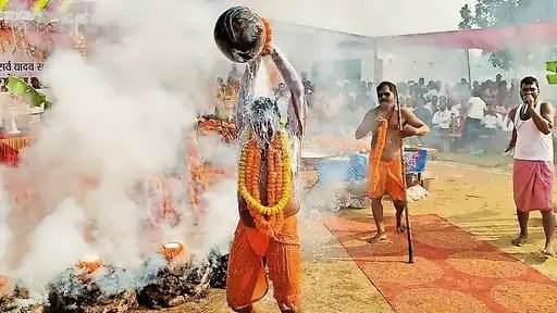पूजा कार्यक्रम की शुरुआत पूरी विधि-विधान से की गई। इस दौरान बड़ी संख्या में श्रद्धालुओं ने भाग लेकर धर्म और परंपरा के इस संगम का साक्षात्कार किया। विजयनगर के धान खरीदी केंद्र के समीप बाकी नदी तट पर बने पूजा स्थल पर मिट्टी के घड़े में दूध भरकर गोबर के उपले से आग लगाई गई और उसी में दूध को खौलाया गया। इसके बाद गोविंद भगत यादव ने पूजा से जुड़ी कथा लोगों को सुनाई और परंपरा के अनुरूप खौलते दूध से स्नान कर चमत्कारिक अनुष्ठान प्रस्तुत किया, जिसे देखकर श्रद्धालु अभिभूत हो उठे।