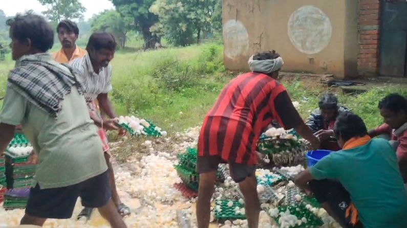 बता दें कि यह घटना तब हुई जब खरसिया से कांसाबेल की ओर जा रही एक पिकअप वैन, जिसमें बड़ी मात्रा में अंडे लदे थे, कुकरगांव के पास अनियंत्रित होकर पलट गई। हादसे का कारण तेज रफ्तार और चालक का नियंत्रण खोना बताया जा रहा है। पिकअप के पलटते ही सड़क पर अंडे बिखर गए और कुछ कैरेट सड़क किनारे बिखर गए। हादसे के बाद चालक वाहन छोड़कर मौके से फरार हो गया, जिसकी तलाश में पुलिस ने छापेमारी शुरू कर दी है।