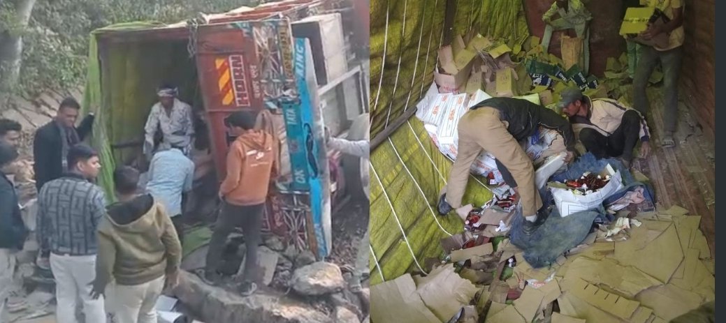 CG Road Accident : शराब से भरी माजदा गाड़ी पलटी, सड़क पर बिखरी पेटियां मौके पर पहुंची पुलिस