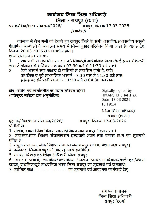 CG School Time Change : भीषण गरमी की वजह से स्कूल का समय बदला, शिक्षा विभाग ने जारी किया आदेश