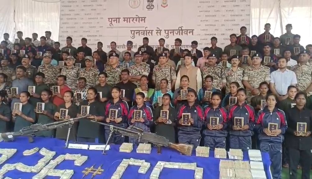 जगदलपुर : छत्तीसगढ़ के जगदलपुर जिले में आज लाल आतंक को बड़ा झटका लगा है। नक्सलवाद को जड़ से खत्म करने के लिए चलाए जा रहे निर्णायक अभियान की डेडलाइन से ठीक 20 दिन पहले बस्तर संभाग के 3 करोड़ 95 लाख रुपये के इनामी 108 नक्सलियों ने सरेंडर कर दिया है।सरेंडर करने वाले 108 नक्सलियों में से 101 नक्सलियों ने हथियार, 3.6 करोड़ रुपये कैश और 1 किलो सोना के साथ आत्मसमर्पण किया है। सरेंडर करने वाले नक्सलियों में बटालियन के प्रमुख नक्सली राहुल और झित्रु की टीम भी शामिल है।